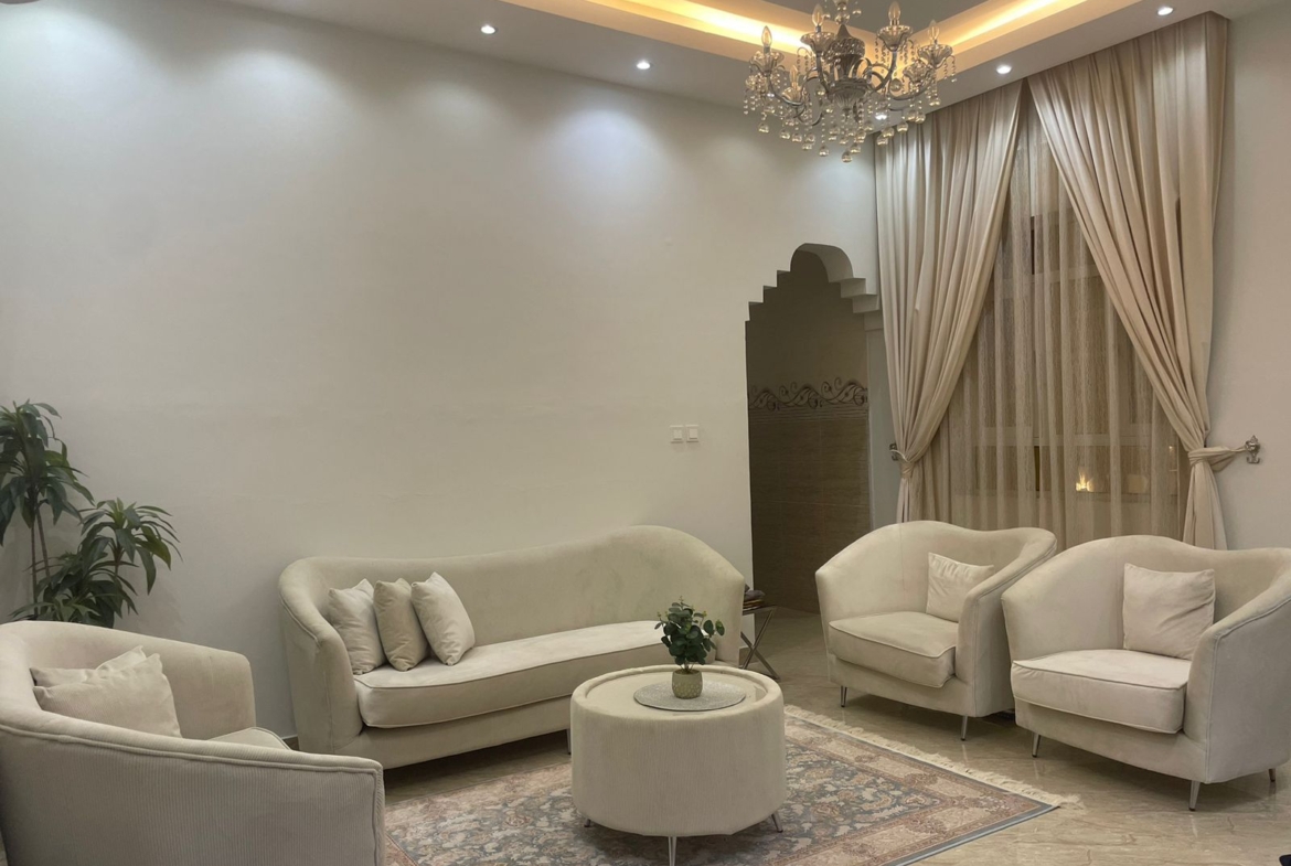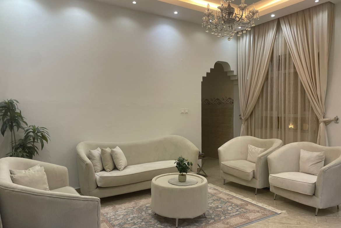 صالة مع دورة مياه + غرفة الضيوف مع دورة مياه + ومجلس + دورة مياه